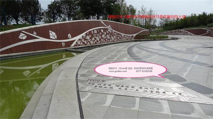 明鉑爾?不銹鋼月季園主入口大門304不銹鋼10毫米厚欄桿,6毫米厚水池10塊月季花圖,利用不銹鋼的拉絲紋路反光色差經(jīng)驗(yàn),解決了北京設(shè)計(jì)院林博士要求很難做到的不銹鋼激光雕刻2毫米深度的月季花圖效果,經(jīng)過(guò)我數(shù)10次的大樣,努力,研究終于做出了最佳理想的效果,出乎意料之外的精美,背后多少時(shí)間的付出,不惜一切代價(jià)的努力方能成就精品。1957年至今13塊月季名稱地雕,近200平方擋墻6毫米月季花雕刻圖,這些所有的產(chǎn)品沒處細(xì)節(jié),每一條線都經(jīng)過(guò)CAD在電腦修改檢查再修改再檢查,打樣再修改再細(xì)化的一個(gè)漫長(zhǎng)的圖紙修改過(guò)程最終敲定的方案效果,擋土墻鉚釘內(nèi)陷,我們加焊接整體再拉絲處理,每一處方案都是創(chuàng)最優(yōu)品質(zhì)去展現(xiàn)給南陽(yáng)不銹鋼月季藝術(shù)的高水準(zhǔn),為迎接全國(guó)人民的到來(lái)參觀,憑著高要求做我們最優(yōu)的產(chǎn)品奉獻(xiàn)給南陽(yáng)這片土地…