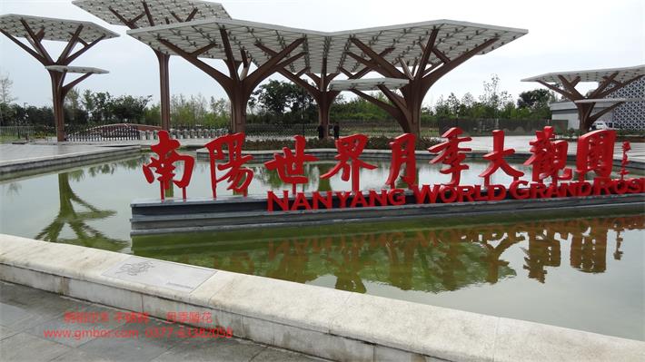 2019世界洲大會(huì)-南陽(yáng)月季園北大門入口欄桿 地雕 月季花304不銹鋼裝飾工程
